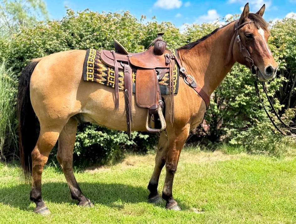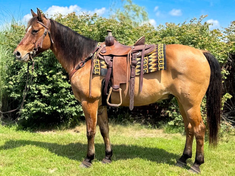 Meet Graham, a stunning 10-year-old Quarter Horse gelding with an eye-catching dun/buckskin coat standing at a solid 15 hands. Graham isn’t just a handsome face—he has the kind and steady temperament that every rider longs for!
