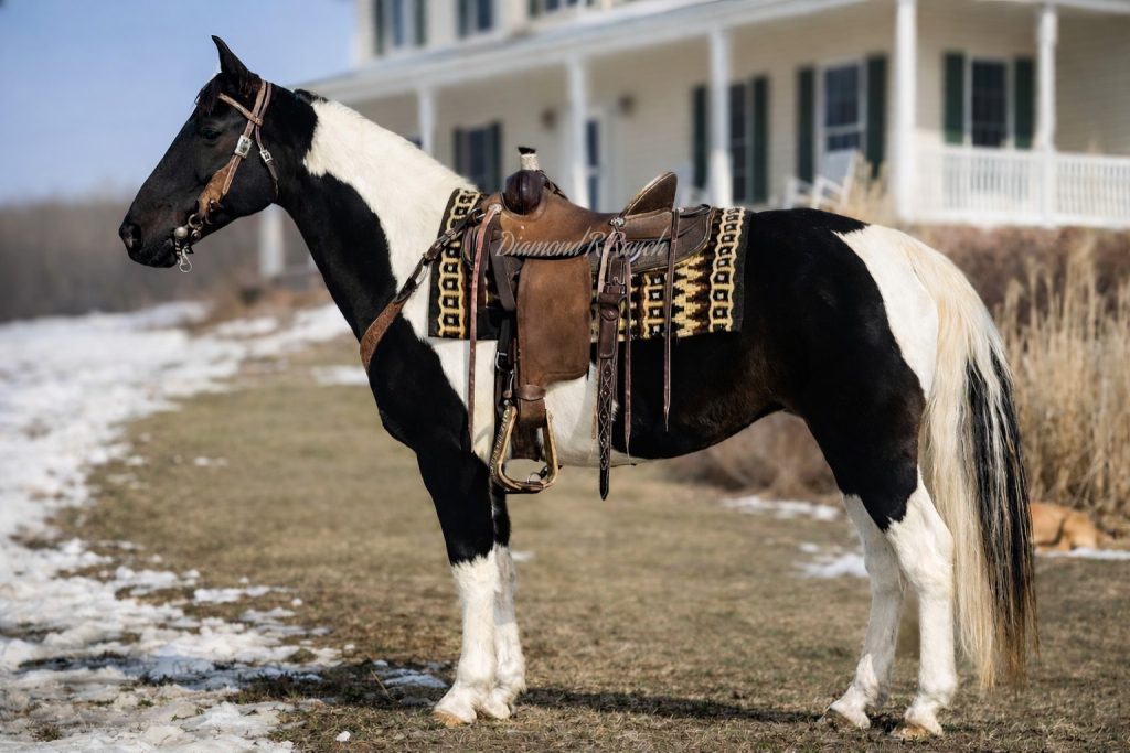 If you are looking for a GENTLE and SAFE trail riding horse for your family then meet “Dixie” She is a beautiful black and white spotted grade Missouri Fox Trotter. She is 9 years old and 15 hands tall. She has belonged to the same family all of her life. All of the kids and neighbor kids learned to ride on her. She is safe for grandma, beginner riders, and she is husband safe. If you are looking for a horse to build your confidence that is Dixie. She will ride out alone on the trails if you don’t have a friend to ride with. She will cross water and ditches. She eases across logs. She just really wants to please you. She is traffic safe if you ride on the road. She stands quiet for you to mount. She is very patient. She has been desensitized to tarps, flag, dogs, and UTV’s. She has the kindest heart. If you are looking for a horse that will love you as much as you do her that is Dixie. She loads and hauls well, stands tied all day long if she needs to, gets along well with other horses, and she is good for the farrier. This sweet girl is looking for a new family to love her.