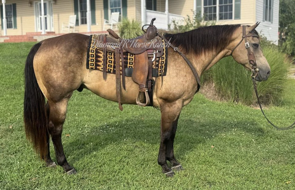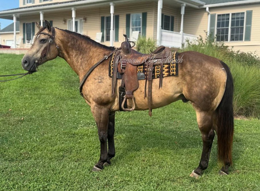 “Louie” is a beautiful buckskin grade Quarter gelding. He is 13 years young and 15.3 hands tall. This guy is built like a tank. He has the gentlest soul. He is so kind and willing. He is a wonderful trail riding horse. He will go anywhere you point his head. He will cross water, downed trees and ease across ditches. He keeps his head down level where it should be and will ride with a loop in your rein. He will walk along without a care in the world. He has a nice trot and a soft easy canter. He is BROKE and he is GENTLE! He has been ranched on a lot. He has been pasture roped on, doctored cattle, and used for every day ranch work. He has been on hunting trips in the mountains and has been used to pack game out on. He is versatile and he really wants to please you. He will meet you at the gate in the pasture. You won’t find a horse with a sweeter disposition. Whether you are looking for a horse to ranch on or an easy going trail horse Louie is your guy.