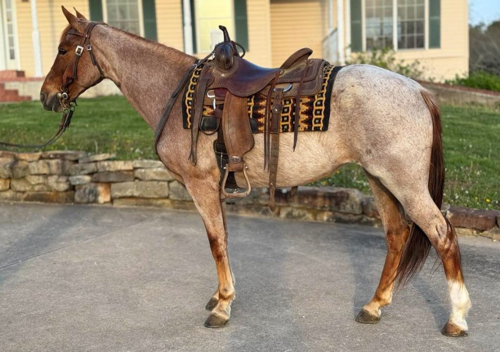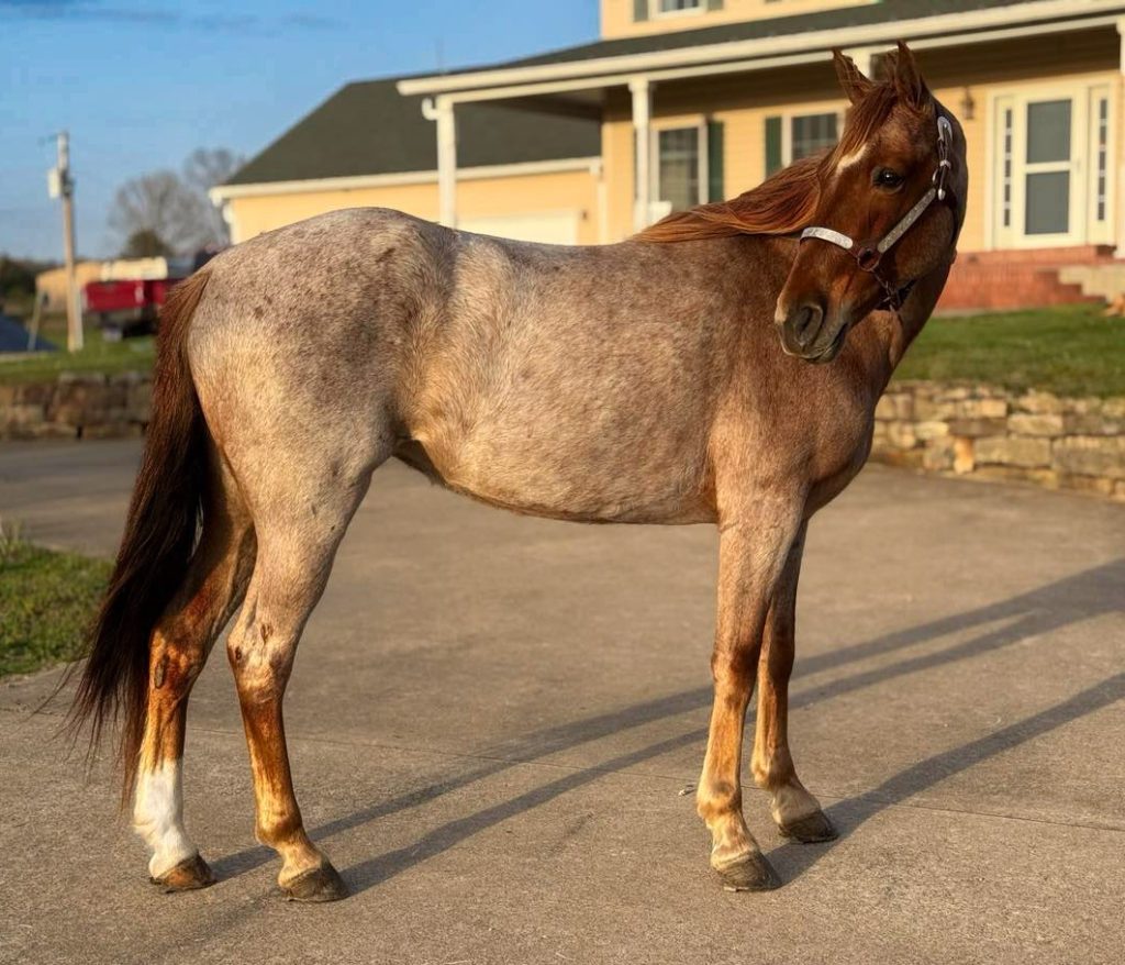 “Rose is a stunning once-in-a-lifetime 8 year old registered Tennessee Walker mare. She is a beautiful hard to find red roan with lots of frosting and a dark red head. She is between 15 hands and 15.1 tall. She was raised, shown and trail ridden by an 84 year old gentleman. She has been trail ridden a lot and she is SAFE and GENTLE!! She has been shown successfully in the Amateur and Novice Division in Trail Pleasure and Country Pleasure. The judge couldn’t help but love this gorgeous girl!! She has a precious disposition. She loves to please. She will walk along easy going down the trail. She has an incredible gait with plenty of head shake. She is so SMOOTH!! She stands like the sweet lady that she is for mounting. She has been ridden on the road and she is traffic safe. She is good in the stall or in the pasture. Your farrier will love her. She loads and hauls wonderfully. You will run the wheels off of your truck trying to find another horse like her. Show her on Saturday night and win a blue ribbon and trail ride her all day on Sunday. This mare is absolute quality!! Serious inquires only please!